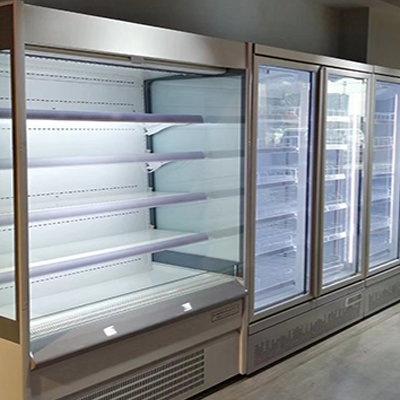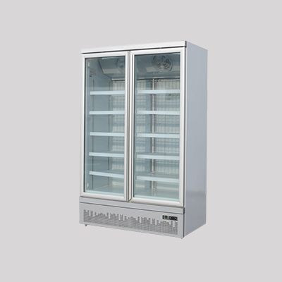 產品配置 LED照明 雙層中空鋼化玻璃+電熱除霧玻璃門 浸塑層架 不銹鋼底板 全銅內螺紋翅片蒸發器 EBM電機 精創溫控器 防水開關 電熱化霜 三洋機組